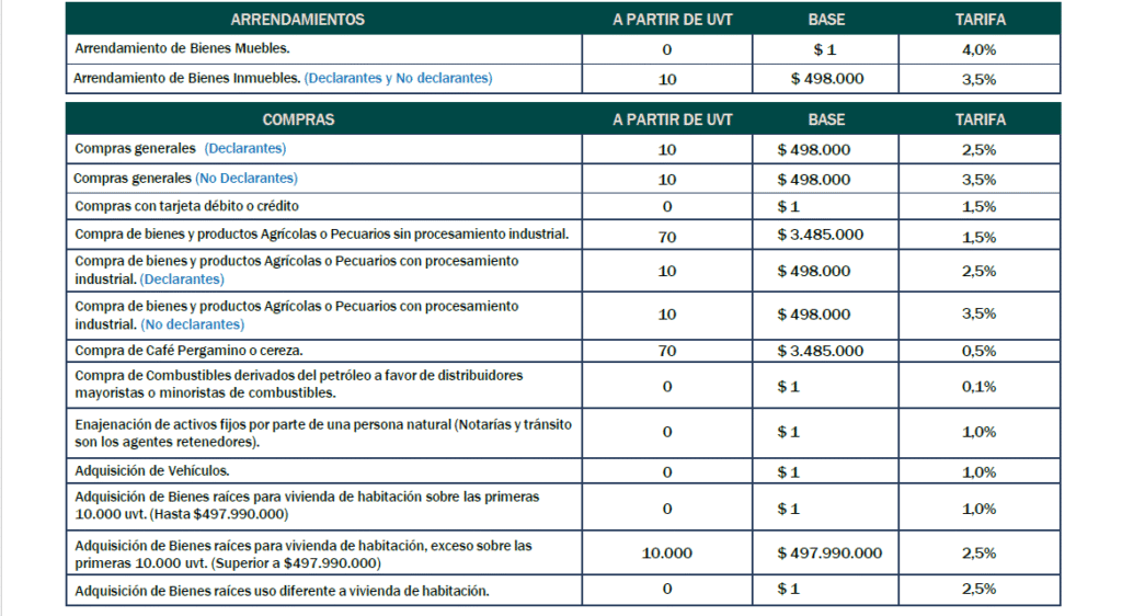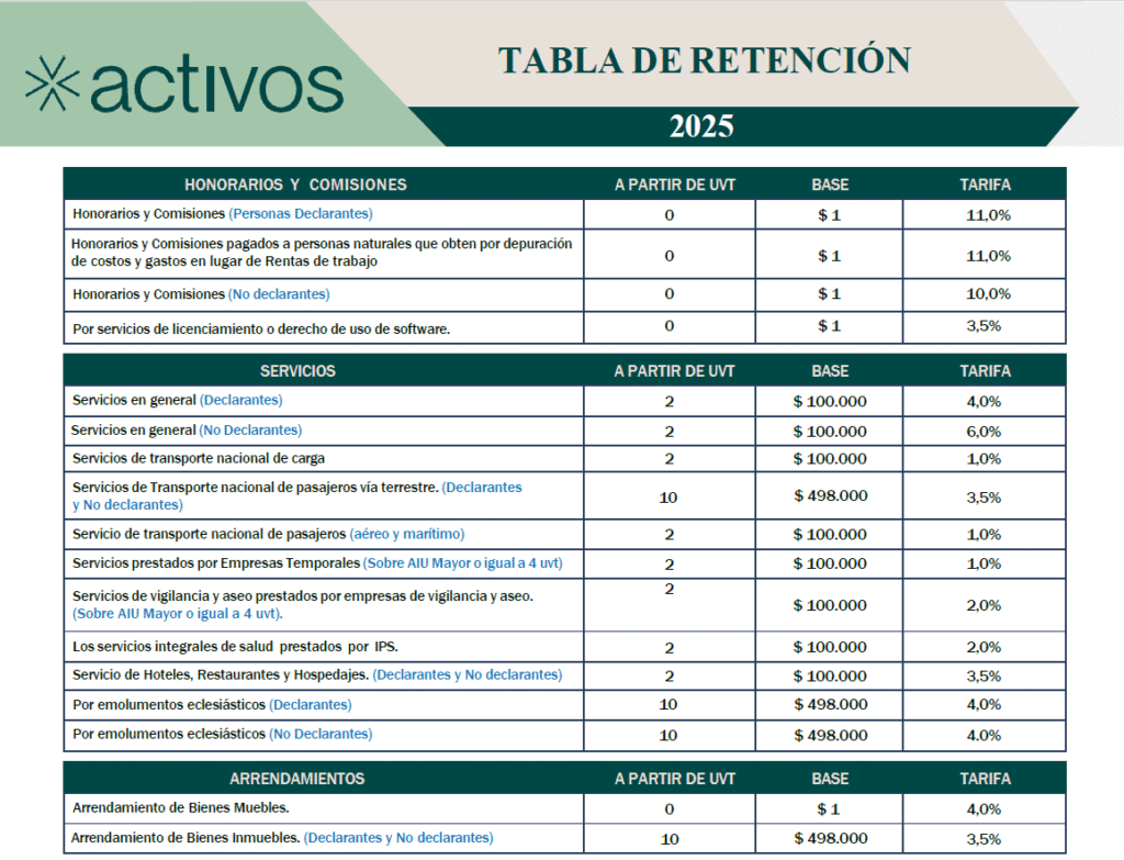 ¿Sabías que el Decreto 572 de mayo de 2025 modificó varios topes clave para calcular las retenciones en la fuente? En este artículo encontrarás la tabla de retenciones actualizada para el 2025, con los valores vigentes en UVT y pesos, explicados de forma práctica y sencilla para empresarios, contadores y administrativos. Ideal para aplicar correctamente las retenciones desde ya y evitar errores con la DIAN.